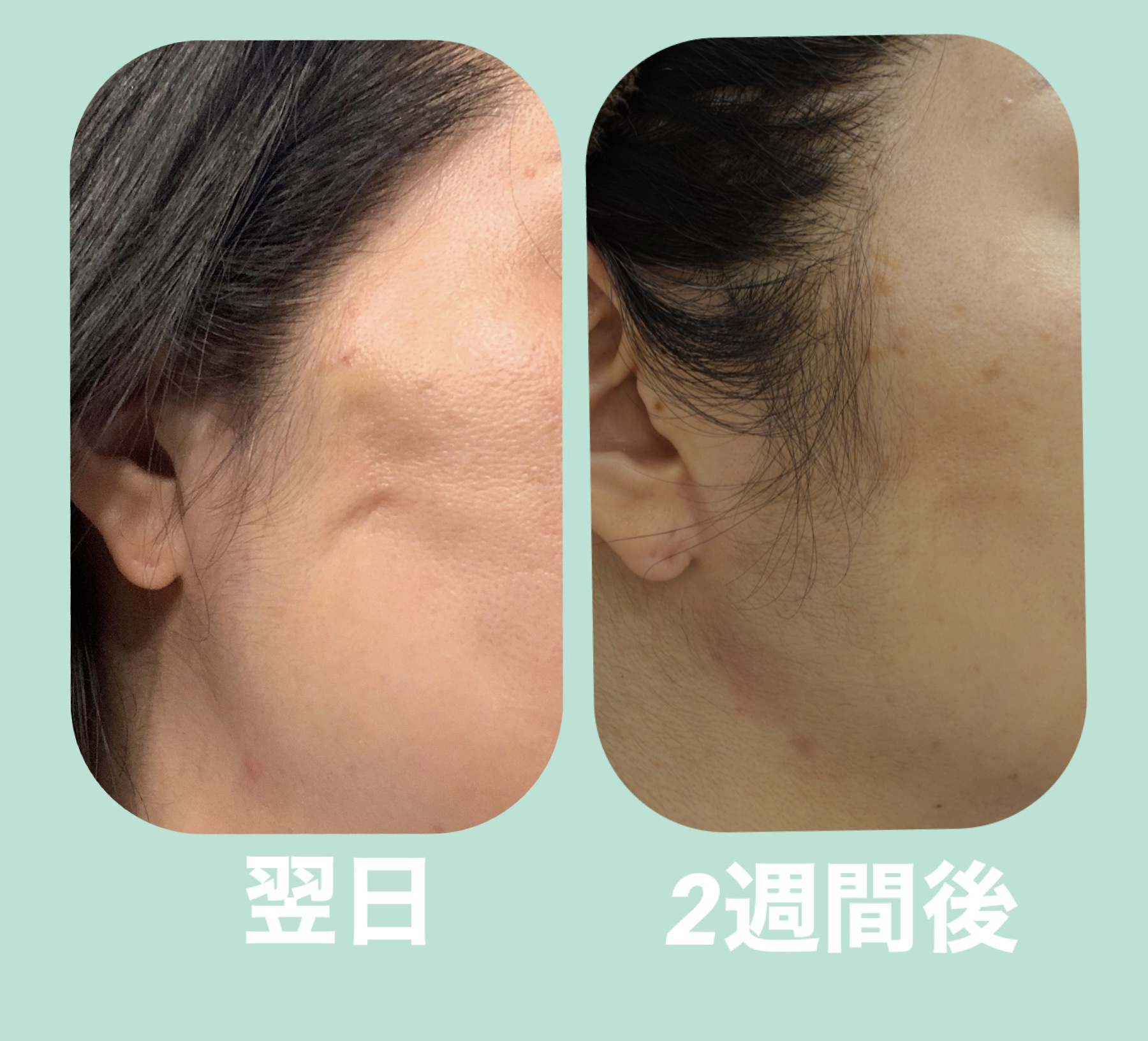 翌日にはかなり目立たなくなり、1~2週間でほとんど分からなくなります。