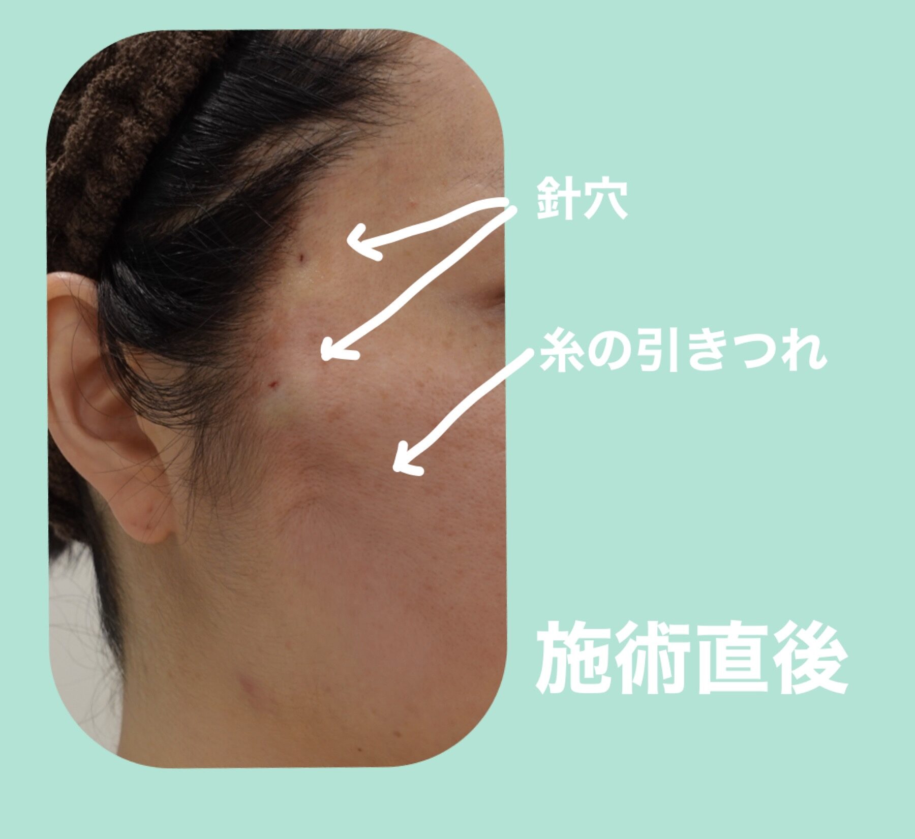✔糸で引っ張ることによる、皮膚の引きつれ