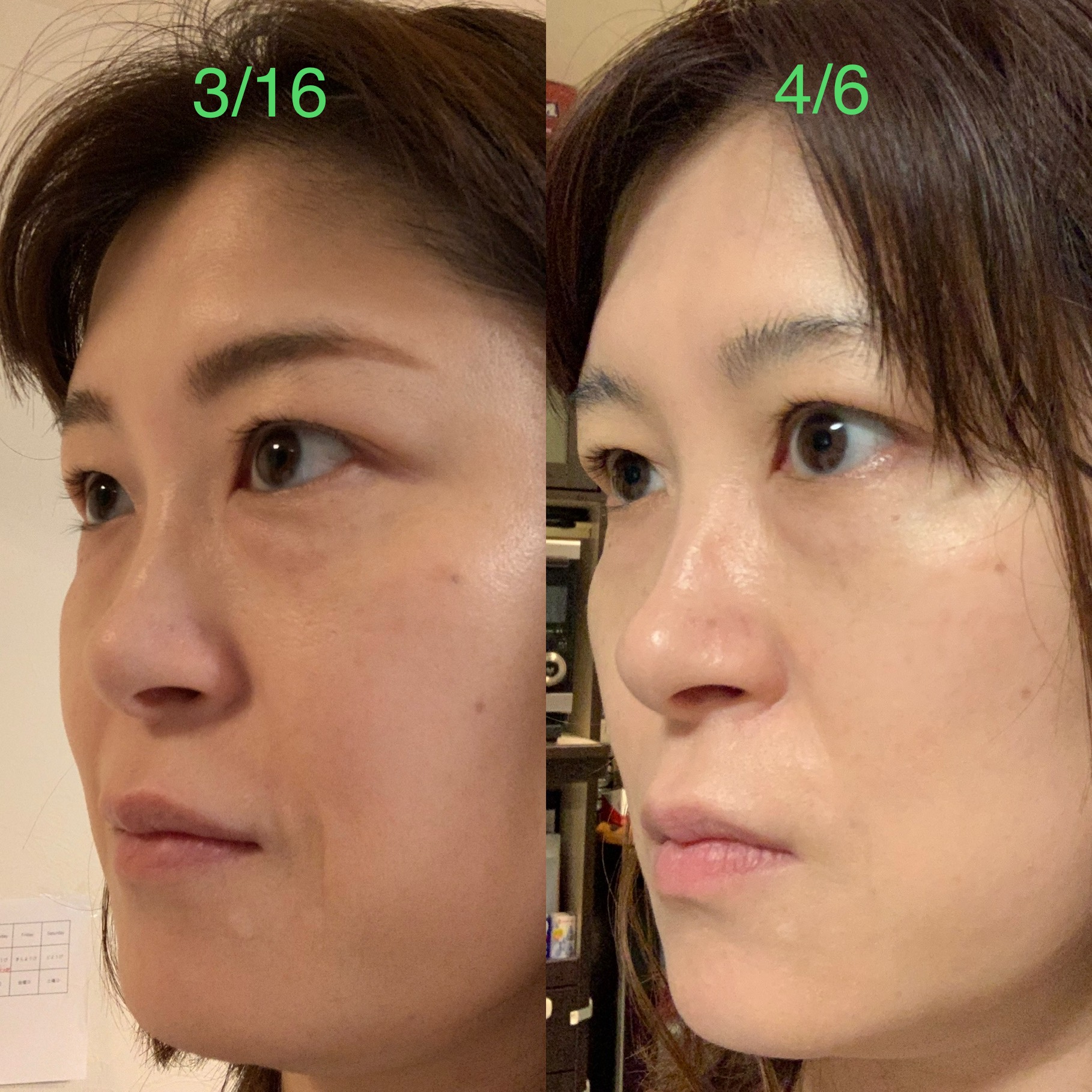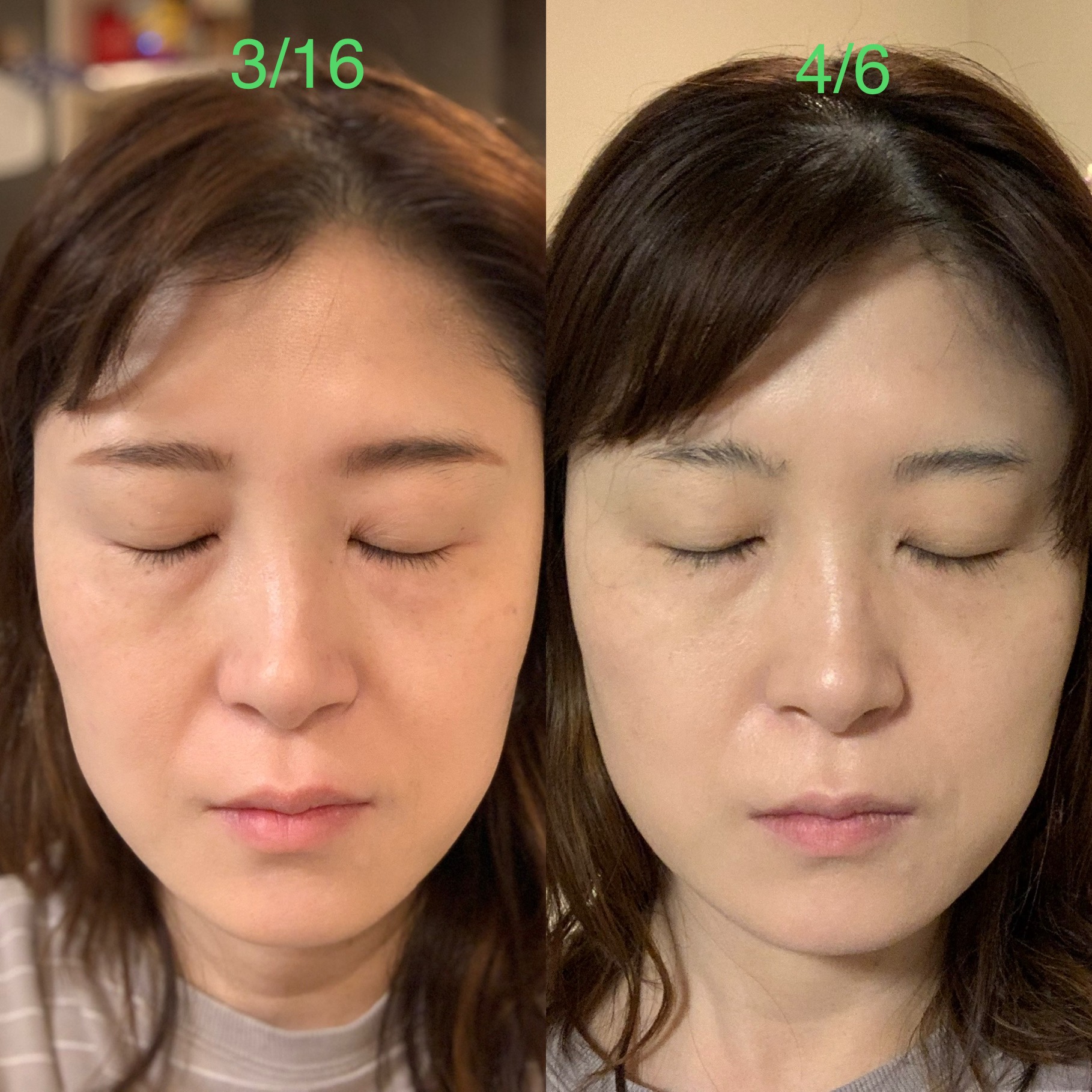 ライティングの違い(家の同じ場所で朝メイク前に携帯での自撮りです。)はあるかもしれませんが、